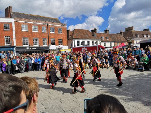 Saturdays procession was a success and our spot in the Square was well danced, our Cotswold style making a good contrast with Mythago Border Morris. A lovely end to our first day.