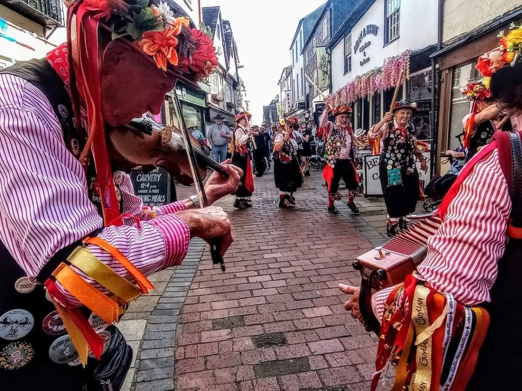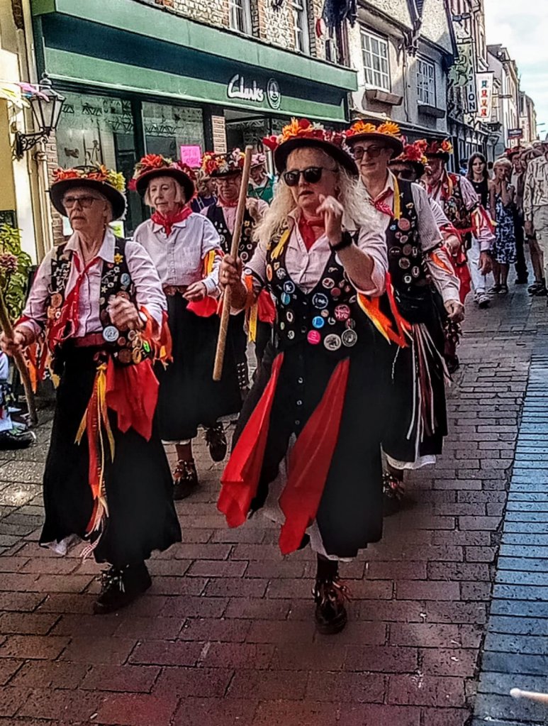Having completed our spot here, along with Taeppa’s Tump, a NorthWest Ladies Morris side, with whom we have danced with before at Henley & other events. Time for a spot of quick refreshment, before moving along to The Dolphin Pub for our next performance, again sharing the dancing with other sides.
